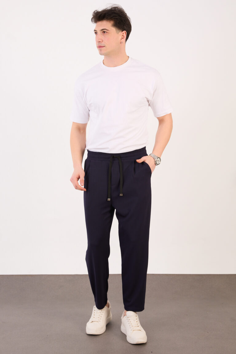 Erkek Lacivert Zara Kesim Yarı Şalvar Lastikli Bağcıklı Pantolon 2606 Model