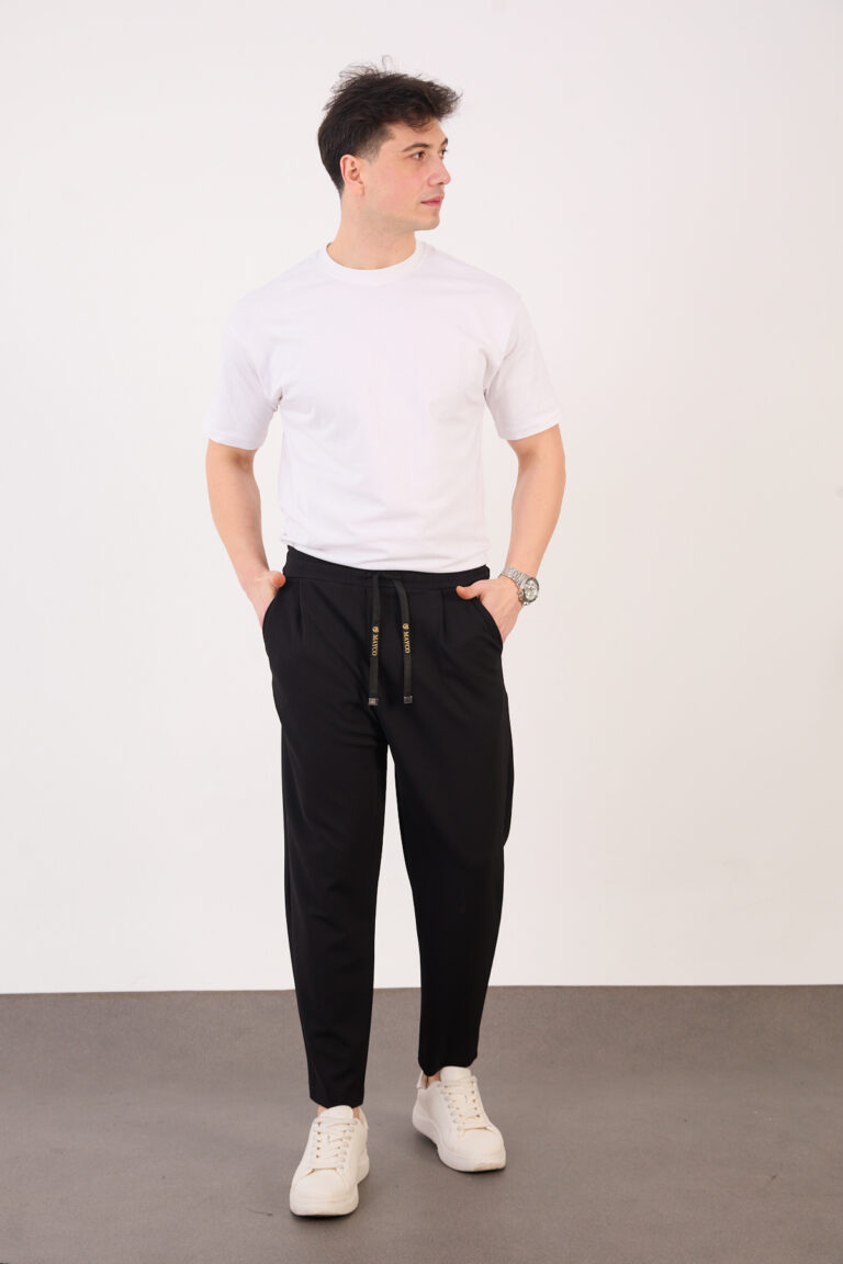 Erkek Siyah Klasik Slim Fit Paraşüt Kumaş Pantolon 07 Model
