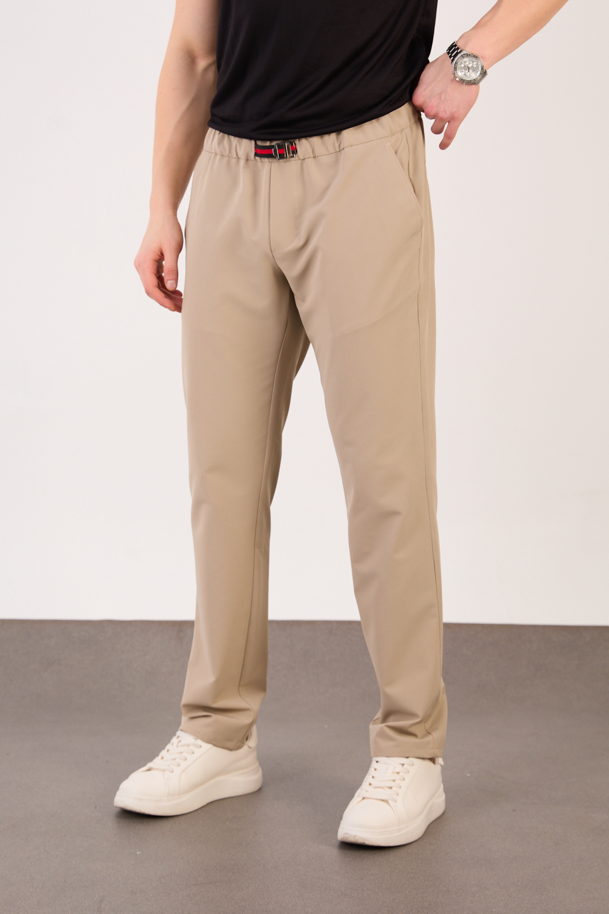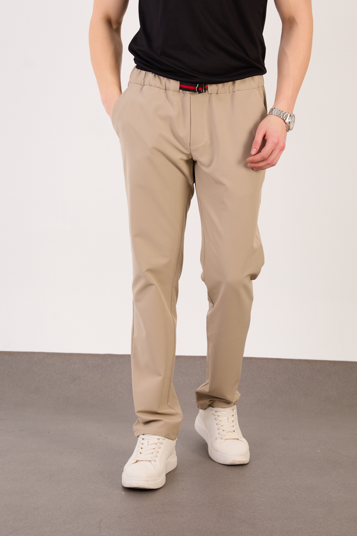 Erkek Bej Paraşüt Pantolon Bel Lastikli Kuşaklı Rahat Spor 06 Model