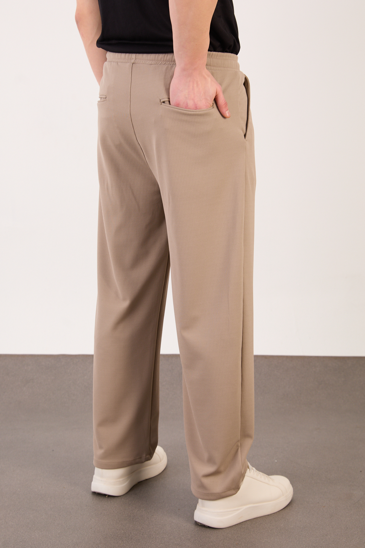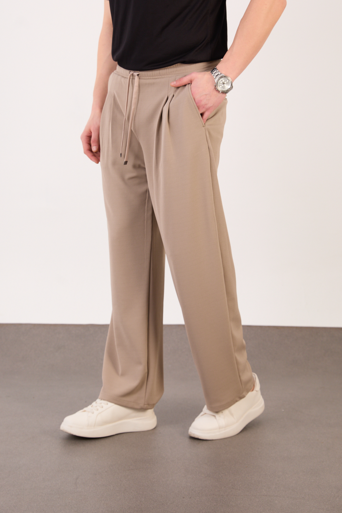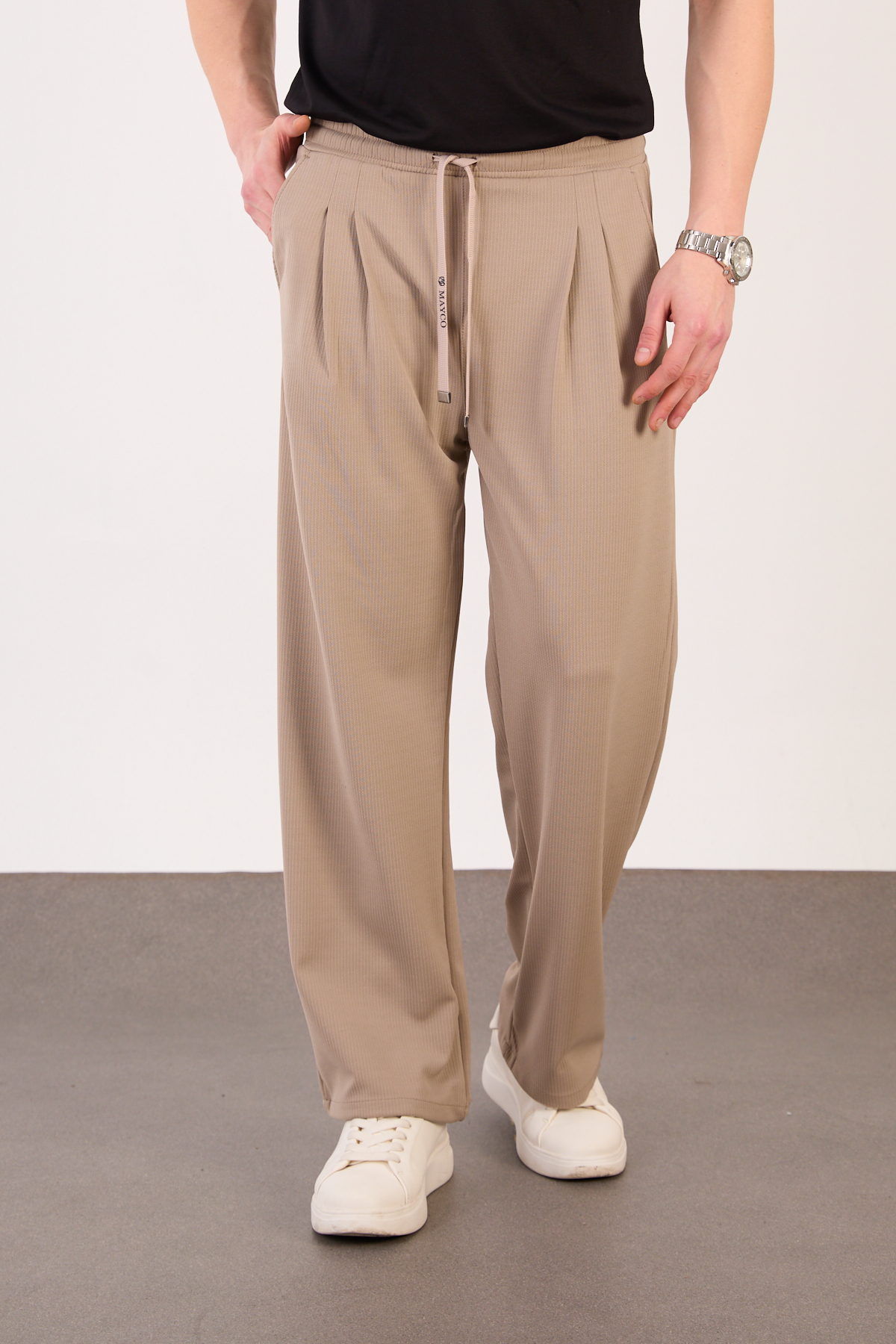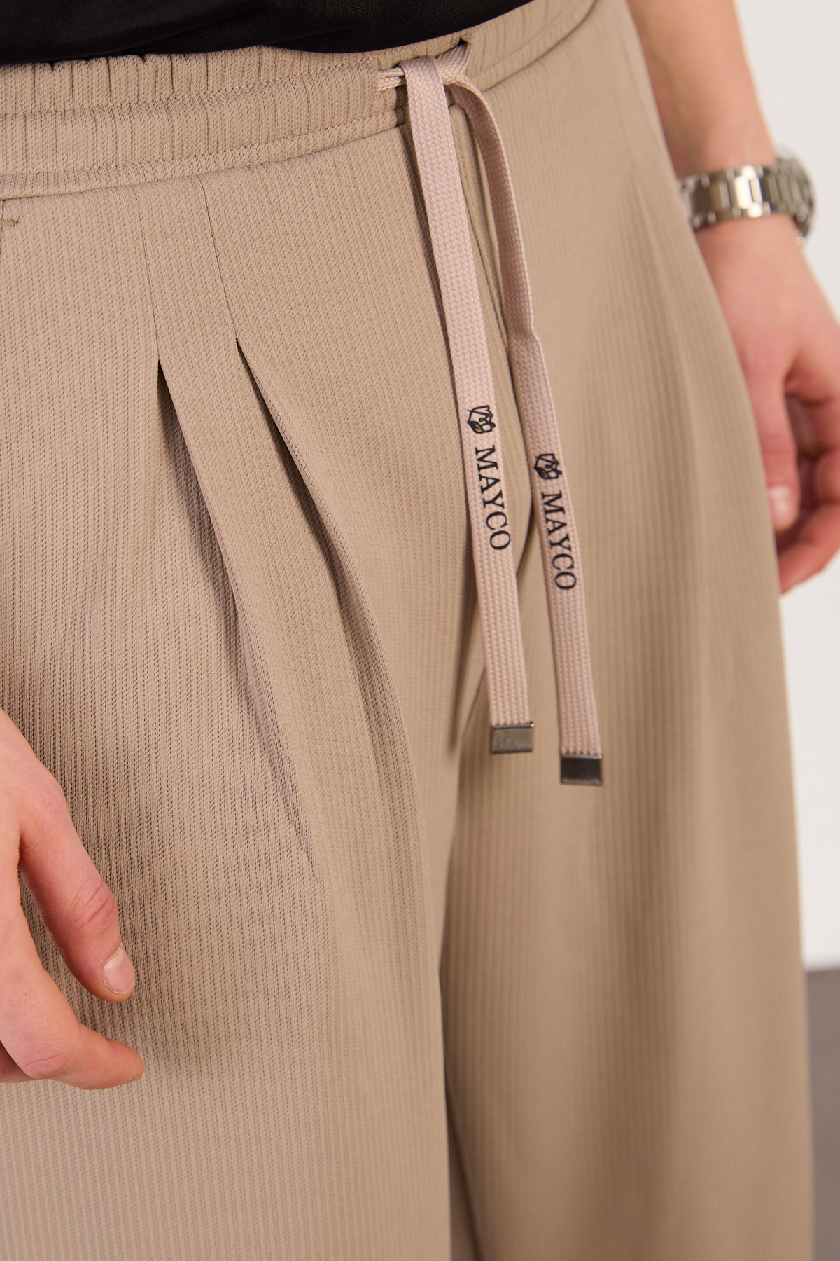 Erkek Bej Bugy Kesim Zara Tarz Bel Lastikli Bağcıklı Pantolon 2608 Model