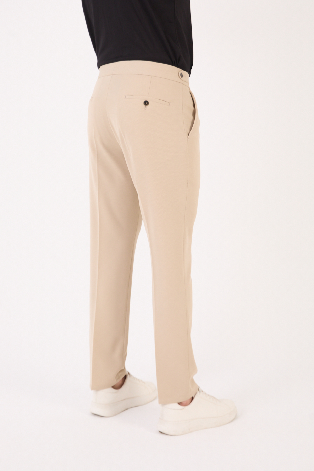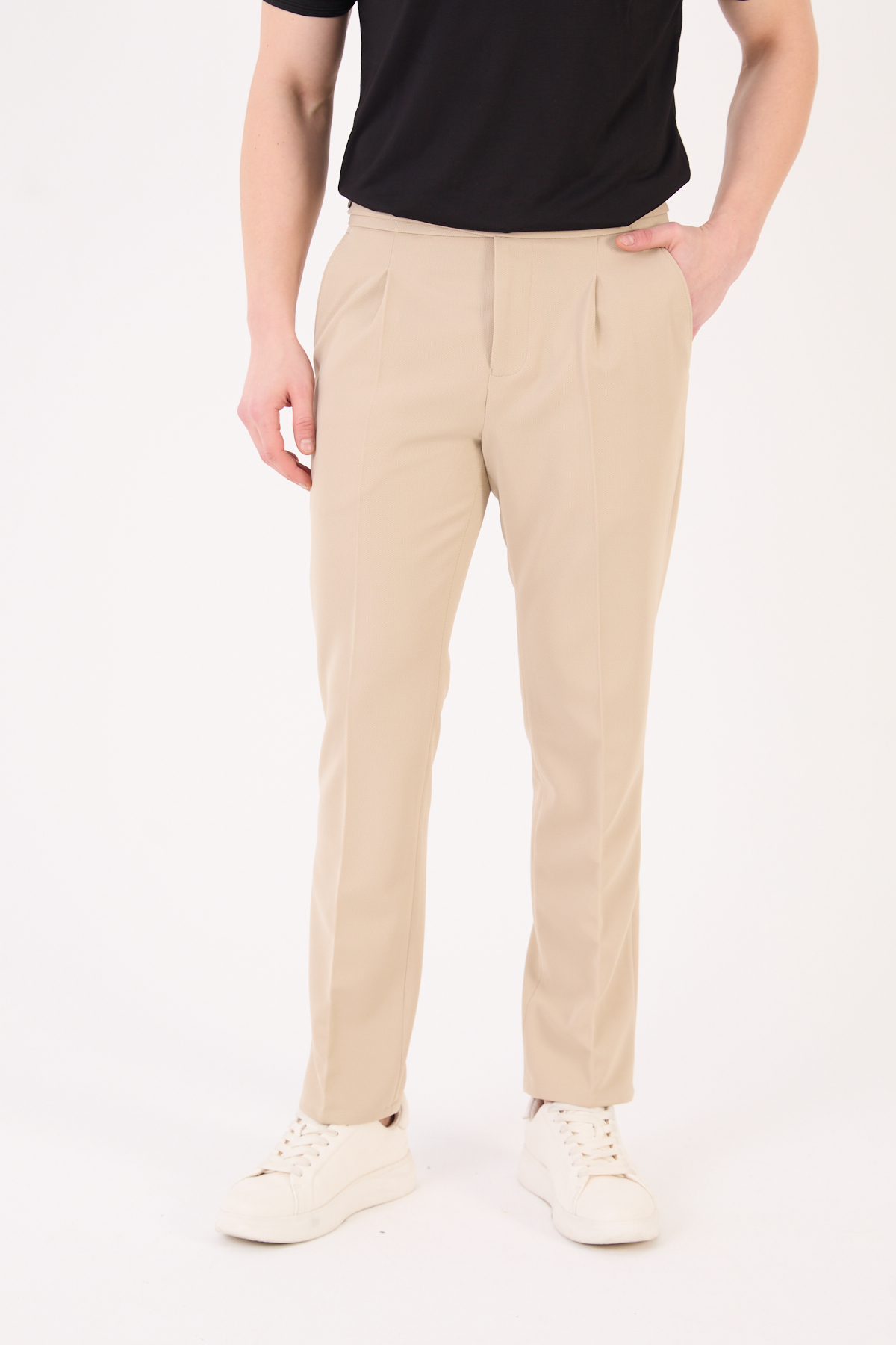 Erkek Bej Slim Fit İtalyan Kesim Kemer Detaylı Klasik Pantolon 012 Model