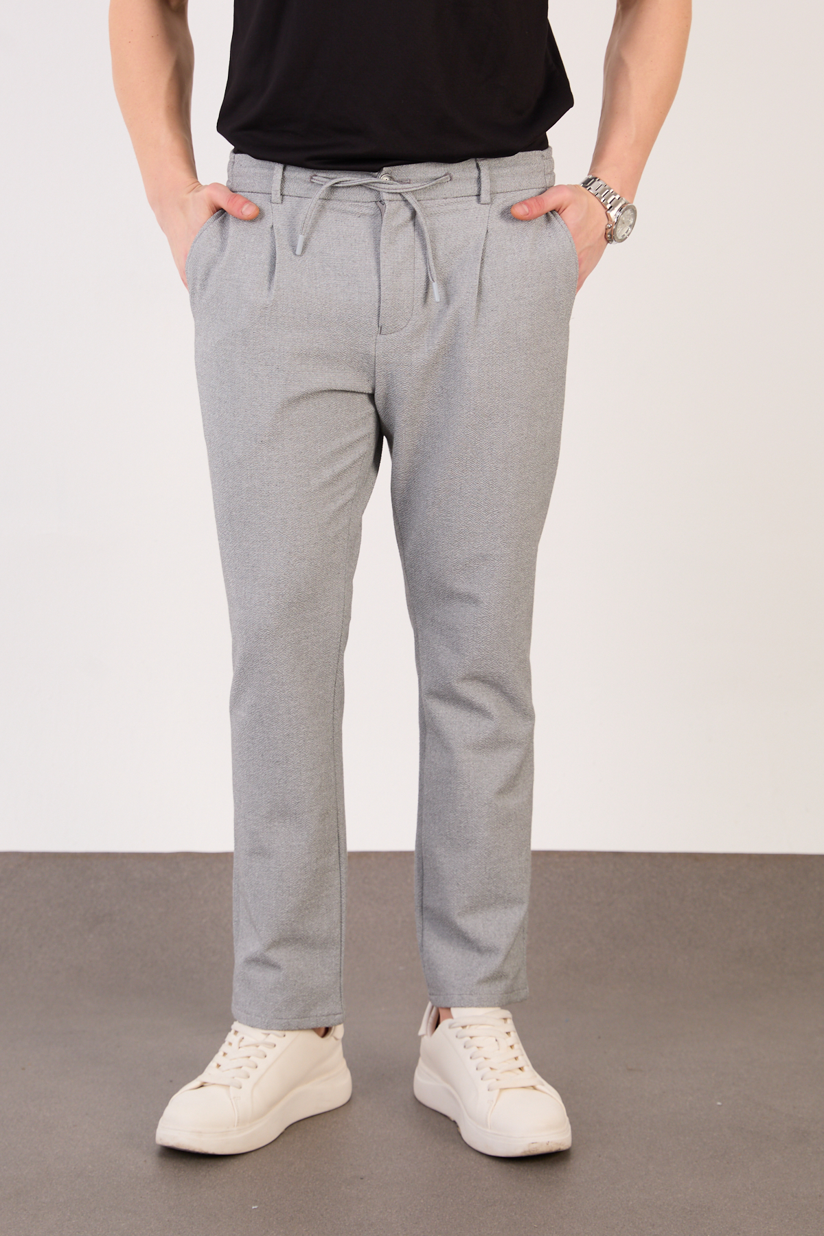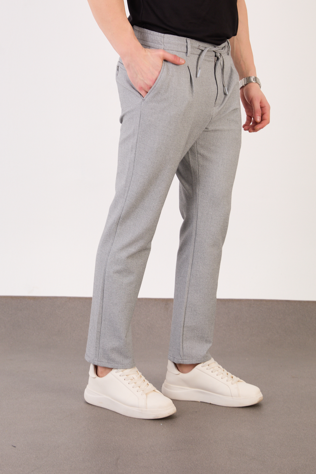 Erkek Gri Jogger Pantolon Yan Bel Lastikli Bağcıklı Gofre Kumaş 2525 Model