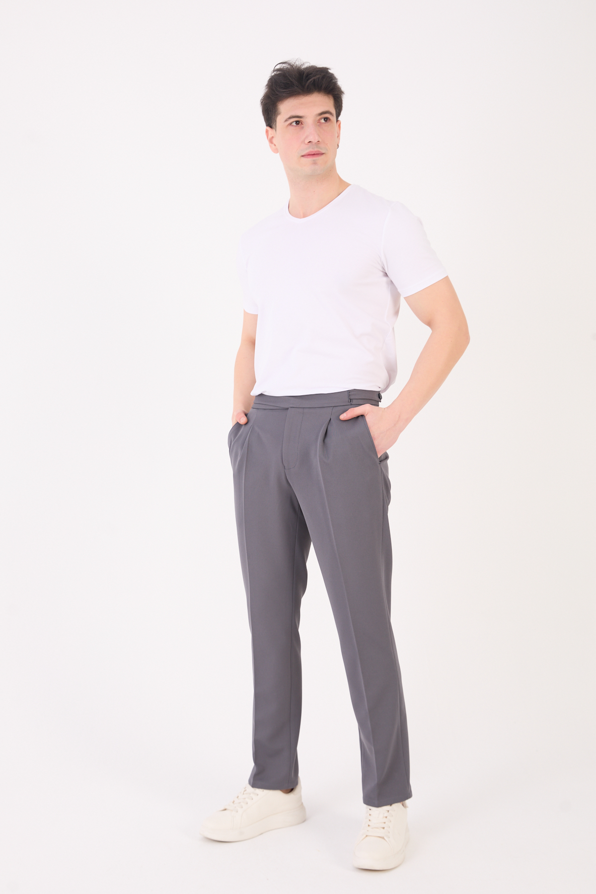 012 Model Erkek Slim Fit İtalyan Kesim Pantolon, modern ve zarif tasarımıyla klasik şıklığı yeniden yorumlar. Kemer detaylı yapısı ve arka cep tasarım detayları sayesinde hem estetik hem de premium bir görünüm sunar.