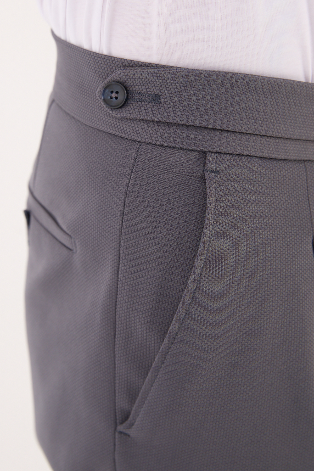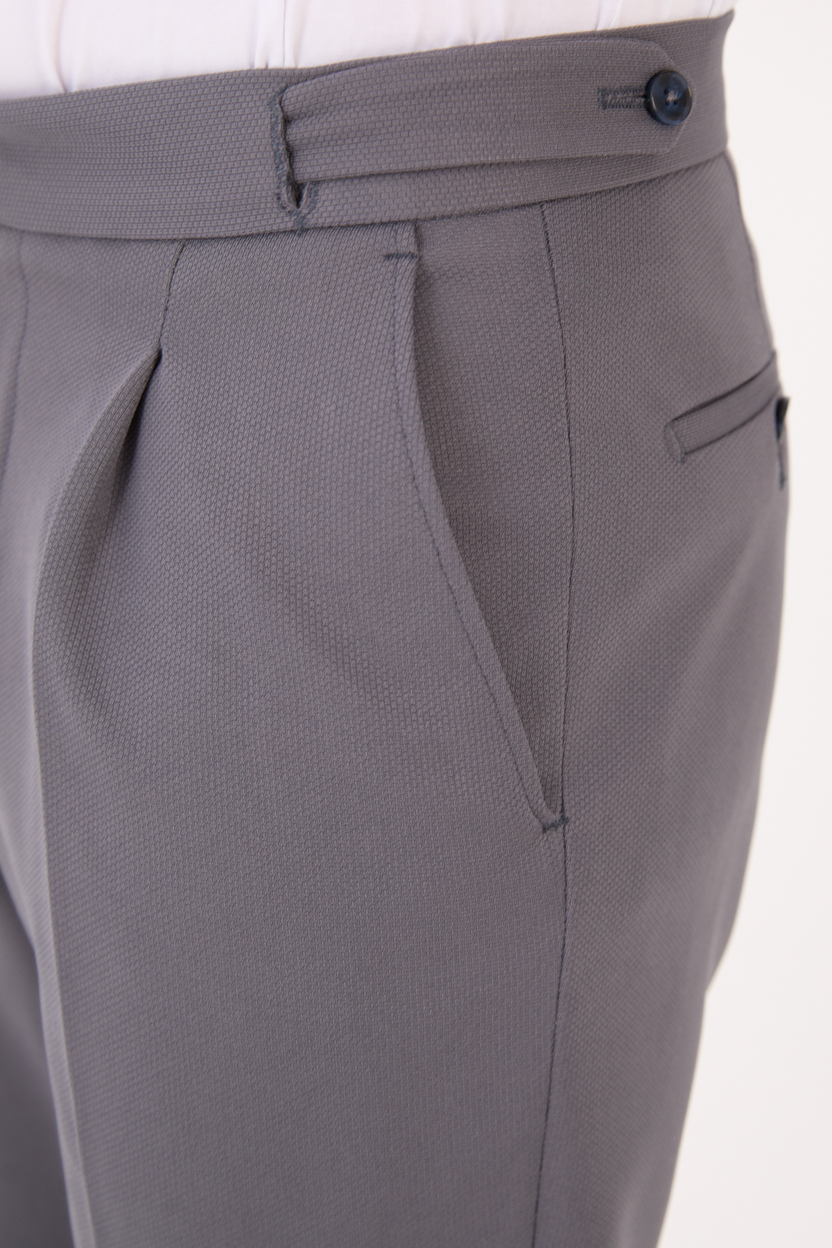 Erkek Gri Slim Fit İtalyan Kesim Kemer Detaylı Klasik Pantolon 012 Model