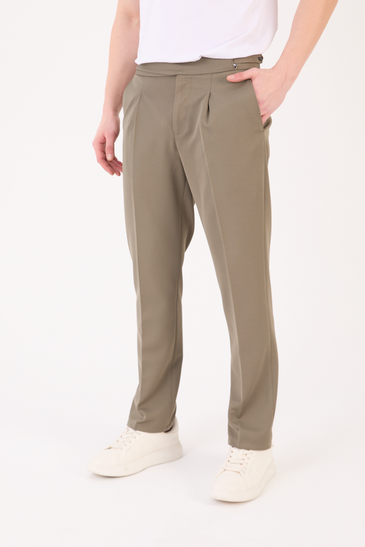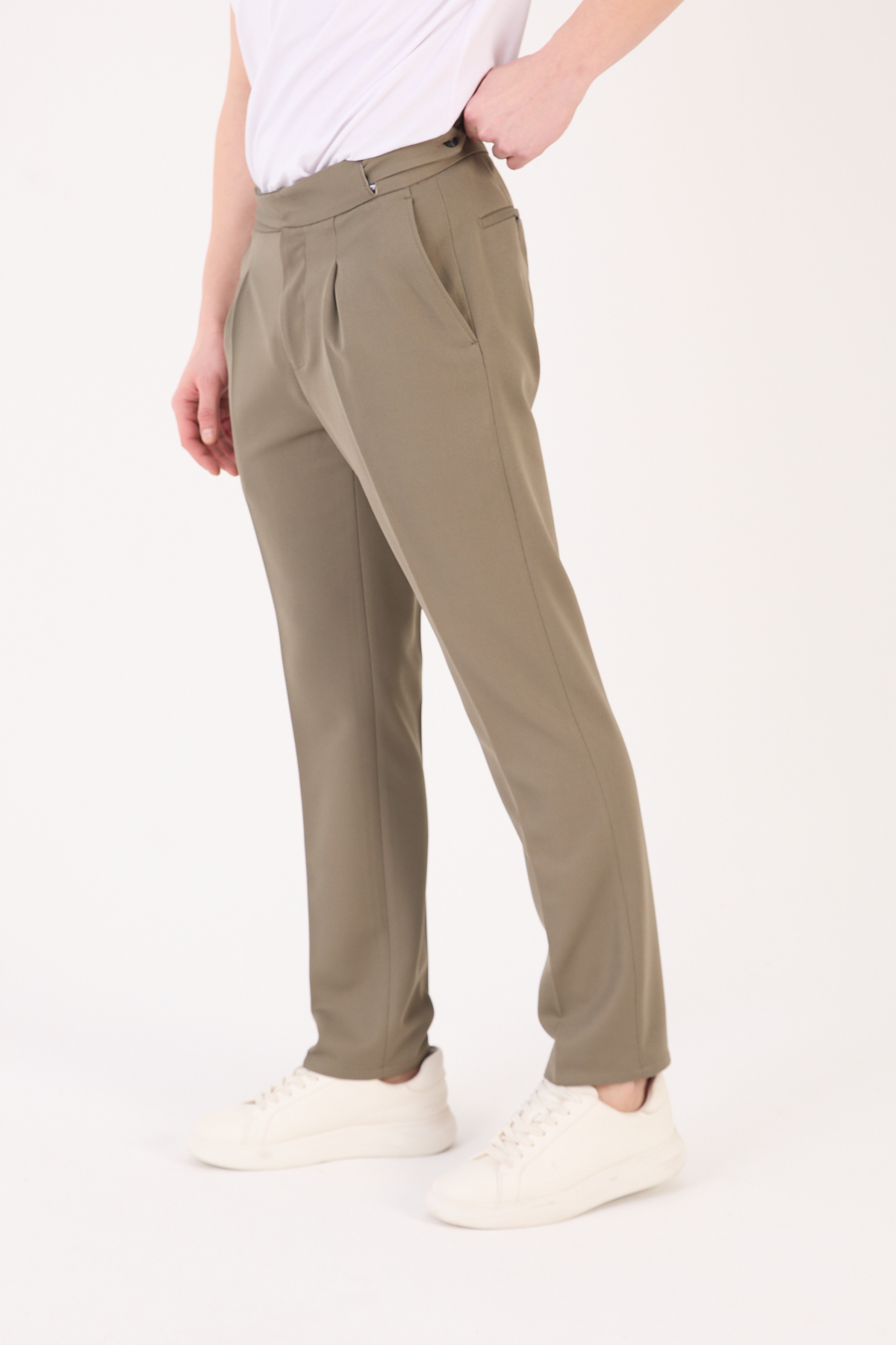 Erkek Haki Slim Fit İtalyan Kesim Kemer Detaylı Pantolon 012 Model