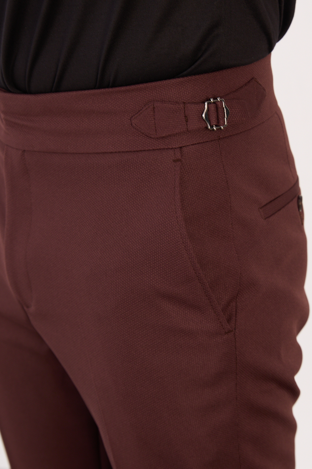 Erkek Kahve Slim Fit İtalyan Kesim Yan Bel Toka Detaylı Pantolon 011 Model