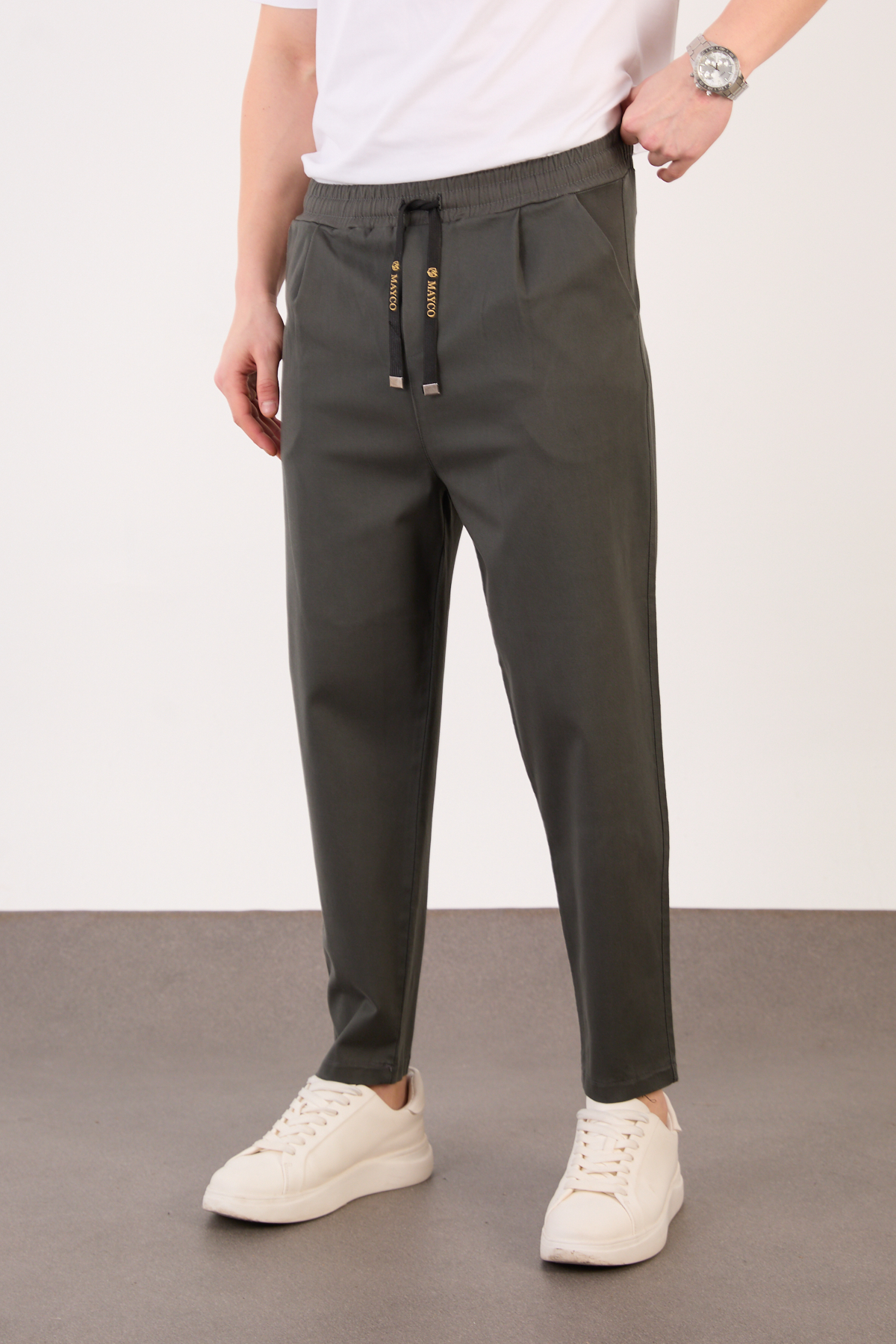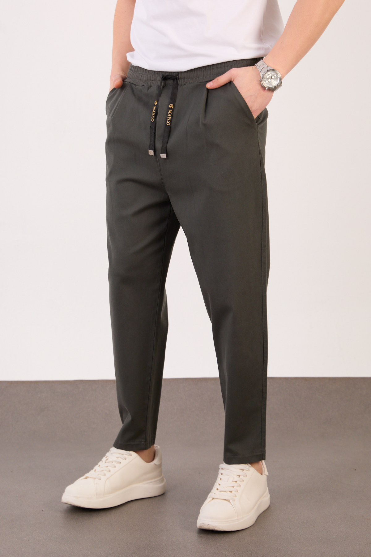 Erkek Koyu Antrasit Şalvar Gabardin Likralı Bel Lastikli Bağcıklı Pantolon 2606-1 Model