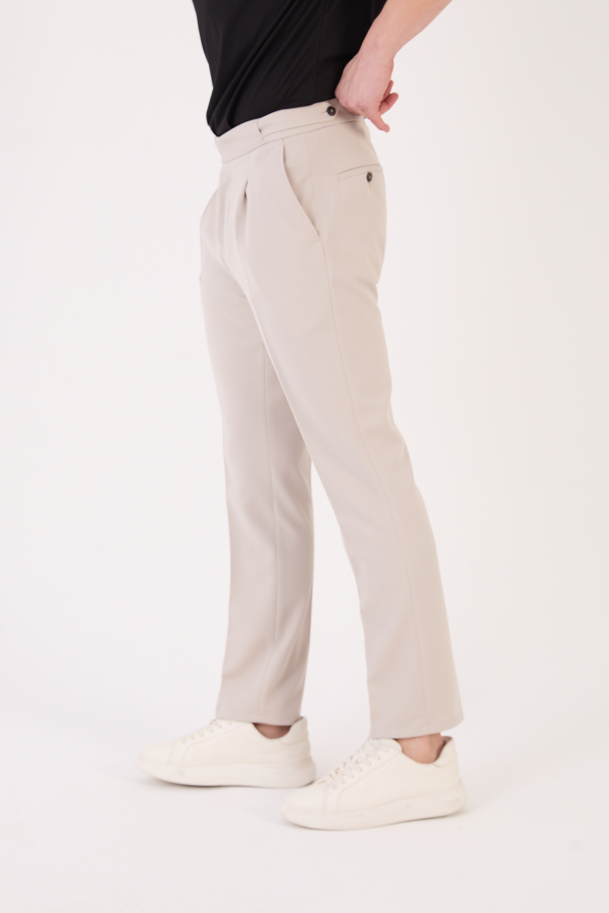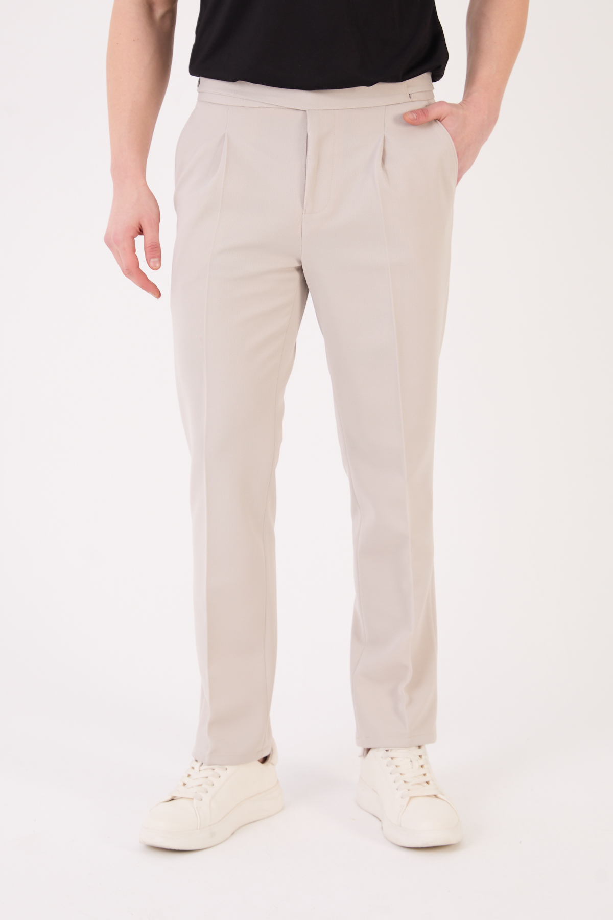 012 Model Erkek Slim Fit İtalyan Kesim Pantolon, modern ve zarif tasarımıyla klasik şıklığı yeniden yorumlar. Kemer detaylı yapısı ve arka cep tasarım detayları sayesinde hem estetik hem de premium bir görünüm sunar.